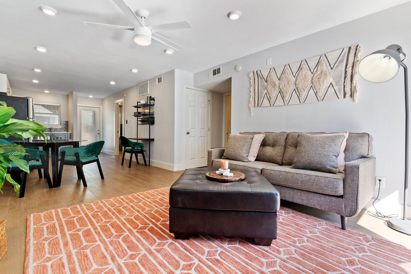 Look no further than this 2BR condo if you are wanting a convenient stay in Austin, centrally located and close to the Downtown action. This condo features a cozy living area with an entertaining living room and modern dining area connected to the fully equipped kitchen. Two highly comfortable bedrooms and two full bathrooms are designed for a perfect stay. ★ LIVING ROOM ★ Spend a slow, relaxing afternoon sitting on a comfy sofa and watching your favorite movie with family and friends. ✔ Large Comfortable Soft Sofa ✔ Ottoman ✔ Smart TV ✔ Work Station with Desk & Chair ✔ Board Games/Puzzles/Books ★ KITCHEN & DINING ★ A beautiful updated kitchen with hardwood cabinetry, state-of-the-art appliances, and spacious countertops will satisfy all your needs if you decide to prepare some delicious dishes. ✔ Microwave ✔ Stove ✔ Oven ✔ Refrigerator/Freezer /ice maker ✔ Dishwasher ✔ Coffee Maker ✔ Glasses ✔ Silverware ✔ Pots & Pans The charming dining area can be found in-between the kitchen and living area. ✔ Dining Table with Seating for 4 ★ SLEEPING ARRANGEMENTS – 2 BEDROOMS ★ In our bedrooms you will find the comforts needed to rest and relax after a fabulous day of exploring Austin. ♛ Bedroom 1 ✔ Queen-Size Bed with Pillows, Linens, and Sheets ✔ Night Stands with Lamp ✔ Smart TV ✔ Armoire with Hangers and Shelves ✔ Ensuite Bathroom ♛ Bedroom 2 ✔ Queen-Size Bed with Pillows, Linens, and Sheets ✔ Night Stands with lamp ✔ Closet with Hangers and Shelves ✔ Dresser with Drawers ★ BATHROOMS ★ The condo features two full bathrooms. There's plenty of essential toiletries and fresh towels at your disposal, so you don't have to worry about bringing your own. ✔ Ensuite bathroom comes with a vanity sink and a large tile shower. ✔ Additional bathroom comes with a vanity sink and a shower/tub combo. ✔ Mirrors ✔ Toilets ✔ Towels ✔ Essential Toiletries Other than the already mentioned amenities, our home also comes with: ✔ High-Speed Wi-Fi ✔ Air Conditioning ✔ Heating ✔ Laundry Room (Washer/Dryer, Detergent, Iron + Board) ✔ Parking lot Parking